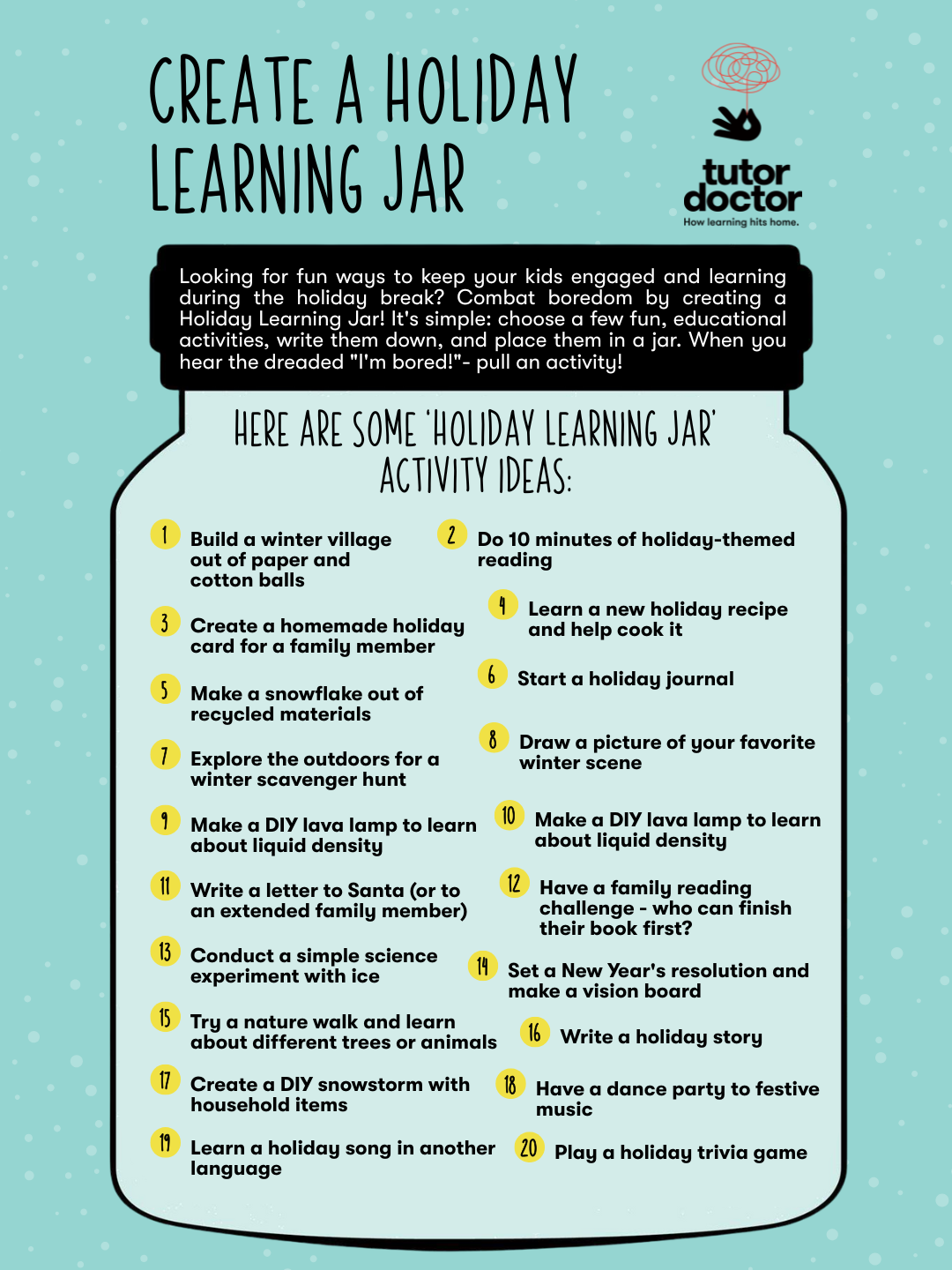 To help families make the most of this time, Tutor Doctor has put together five fun, hands-on, and screen-free activities designed to keep kids learning, creating, and ready for the year ahead.