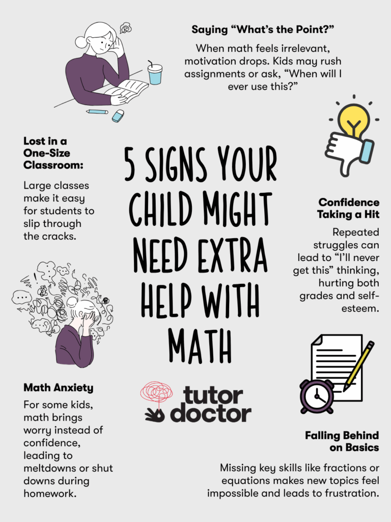 If you’ve been wondering whether it’s time to get extra support, here are five key signs to look for. Becky Ward, Education Specialist at Tutor Doctor, shares these insights to help you identify when your child might need personalized math help to get back on track.