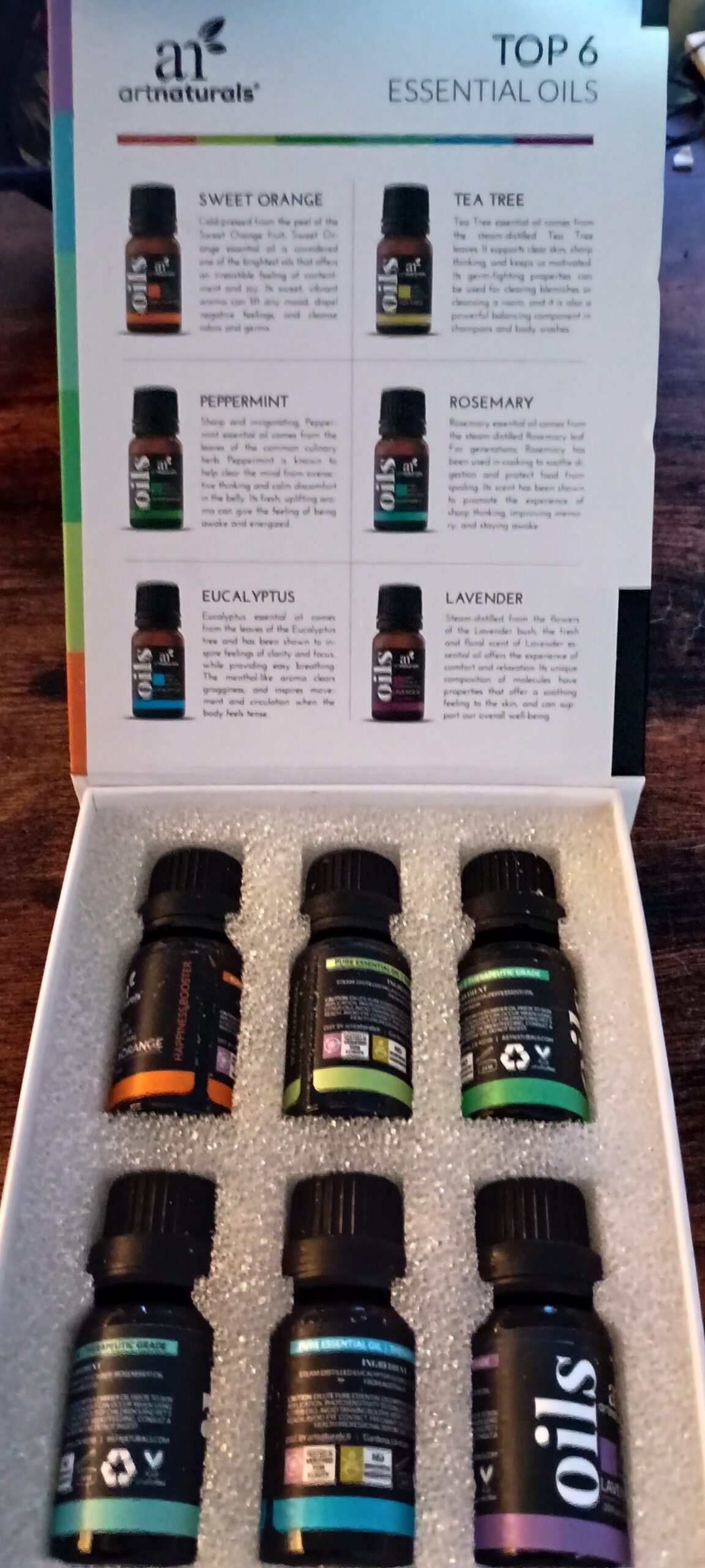 arttnaturals Top 6 Essential Oils Set 6 Piece Set comes in a cute little box that will fit in any drawer or can be taken on the go. I could see using the Oils when traveling or being in a Park to calm our children and even ourselves at times.
