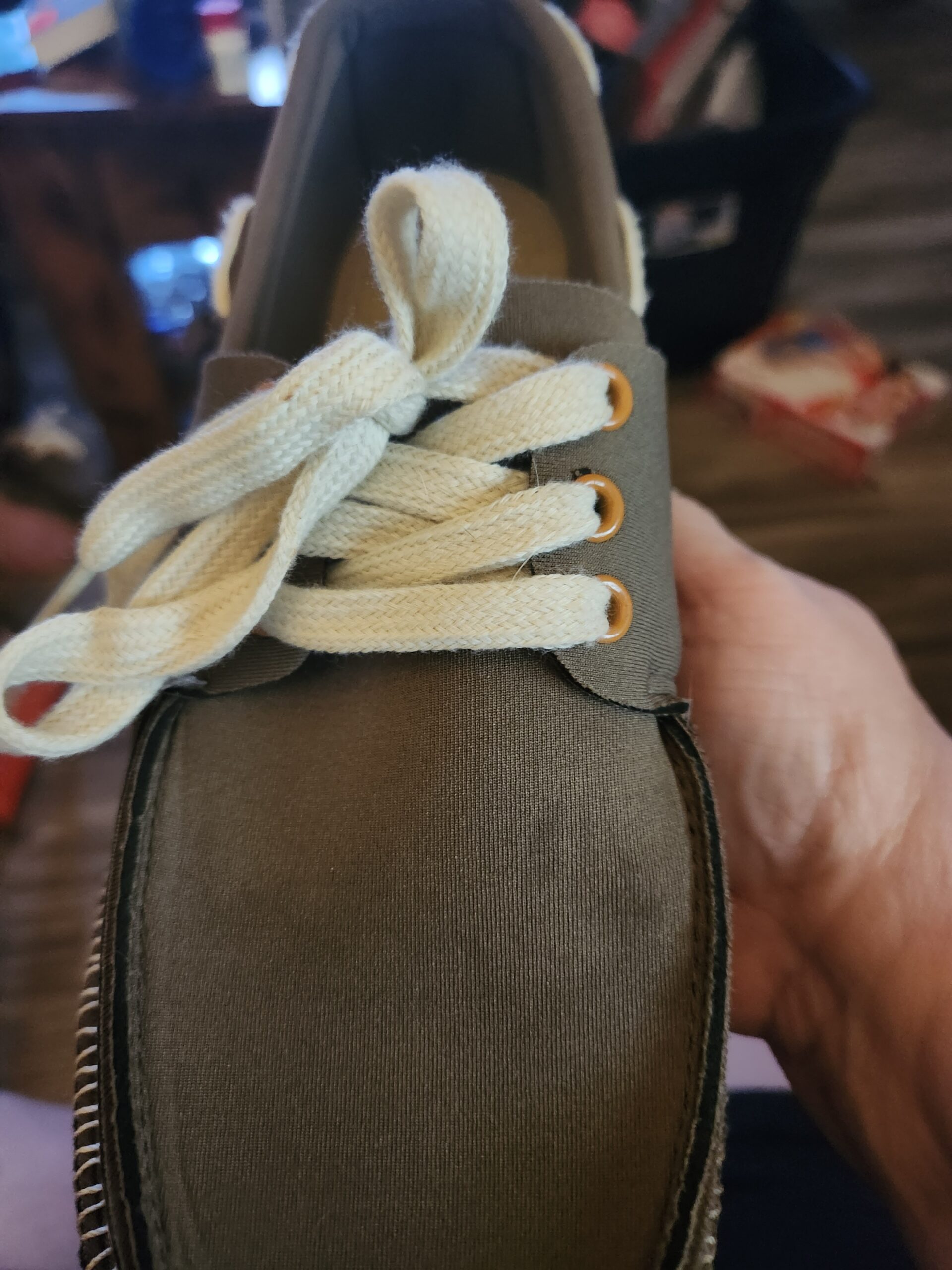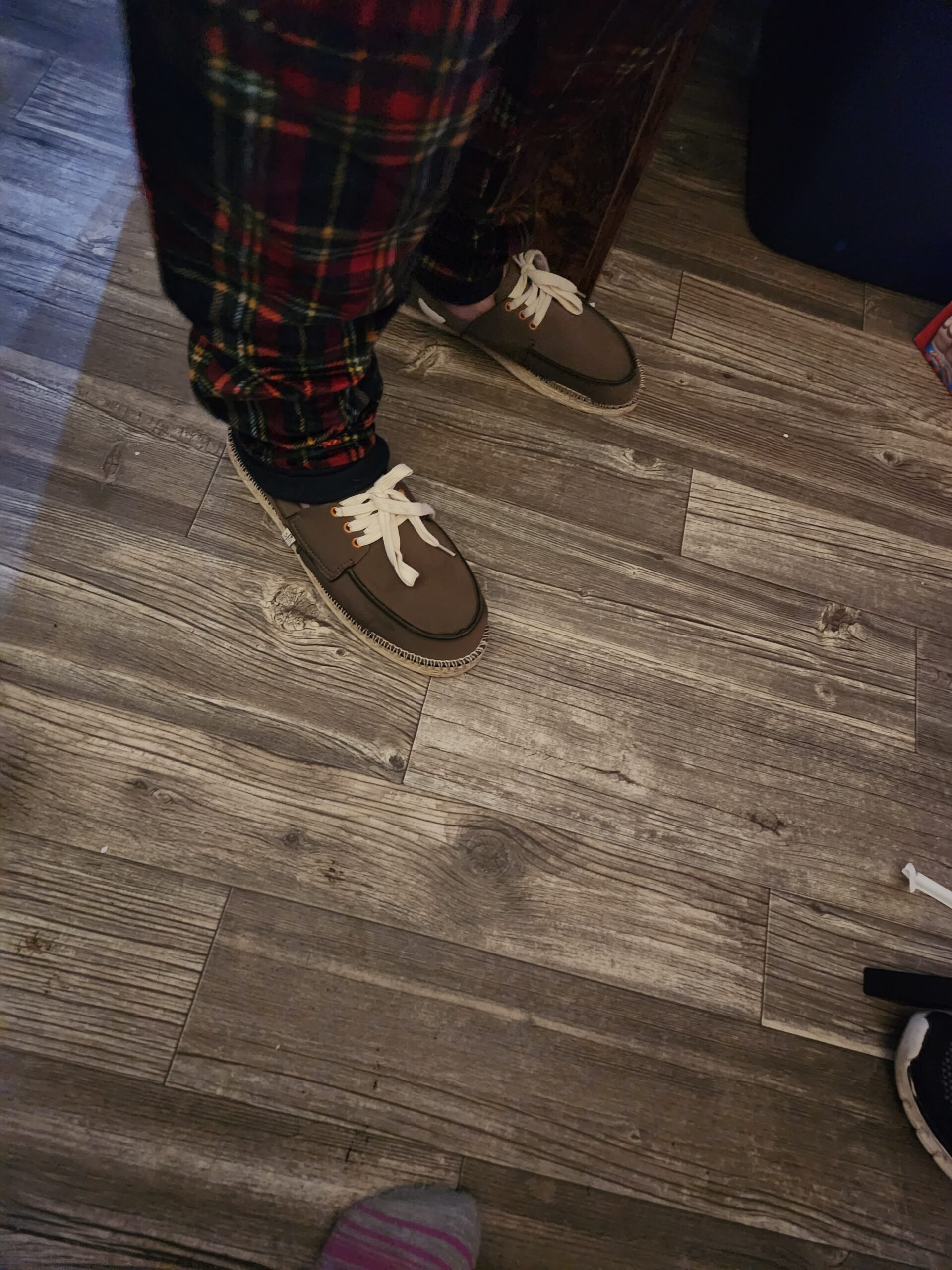 Charlie asked me for a week up until Christmas if the shoes had arrived and I kept saying no, because there were wrapped and under the tree. Christmas Eve arrived and I handed Charlie his new pjs and the package with Boat Shoes (Olive/Natural) inside. As soon as Charlie opened them he stopped and put the shoes on.