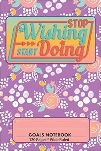 Stop Wishing Start Doing Goals Notebook is a Purple Floral 6×9 with 120 pages of Wide Ruled Lined Journal to help you plan, list, jot, scribble, and motivate you to achieve your goals.