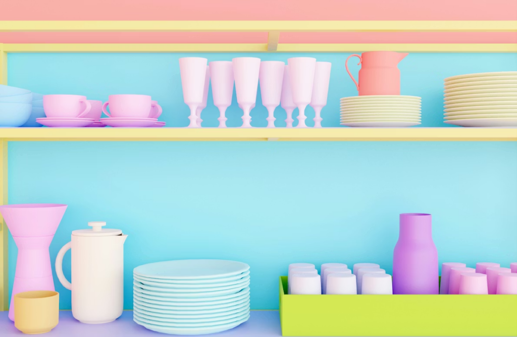 https://unsplash.com/photos/a-shelf-filled-with-plates-and-cups-on-top-of-a-blue-wall-j9TvWon5q_s
