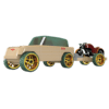 The HR5 Scorch features the first darker stained wood in the line has seen since its conception; also new to the mini line: the pick-up truck Grizzly, the X10 Timber Pack featuring an SUV with a trailer, and the first-ever Automoblox motorcycle! The BR100 Hercules 16.5″ hauler comes with two back ends, two mini vehicles, has room to hold and haul up to five mini vehicles, and features an adjustable ramp. Children can even mix and match the 54 pieces to change it from a car carrier to a dump truck!