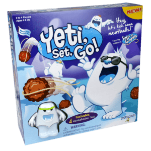 Yeti, Set, Go! Yeti, Set, Go! is a follow-up to Play Monster’s Toy of the Year award-winning game, Yeti in My Spaghetti®, taking the mythical yeti theme to a whole new level! It’s fast-paced, with kids bopping yeti heads to make the yetis kick meatballs—but it requires skill and practice of coordination to aim the yetis and know how much force to use to launch the meatballs where they need to go! Until kids have the hang of it, meatballs may fly everywhere—but that’s part of the fun! Just chase them down and relaunch! It’s an entertaining game that helps kids with hand/eye coordination and spatial awareness.