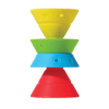 Hix is a versatile new construction toy consisting of four convertible cones in elastic silicone rubber. Each cone transforms into four basic shapes which can be stacked and nested in a myriad of different configurations. Hix is a delight to fidget with and make geometry accessible and fun for all ages. Finally, you have smart building blocks that don’t create any noise when tumbling down. Measures approximately 5.5″ when stacked.