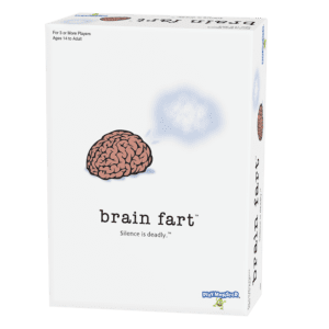 Brain FartThere are no foul smells accompanying Brain Farts, but you will hear some “noises” coming from the cool brain timer when the round time is up! Game play starts with everyone rolling the large cubes (like giant dice!) to get the categories. The nine cubes make up your always-different “game board.” On each cube is a category, like Hotties, Villains, Beverages and more. Then someone taps the top of the brain-shaped timer to get a letter and start the countdown. Now one-by-one, players have to name something from one of the cube categories that starts with the letter displayed. So, if the letter is “M” you could name “milk” or “mojito” as a beverage, then grab that cube. If it’s your turn when the brain farts, you lose a token. With 54 categories and 21 letters, game play is always different! Designed for 3 or more players.