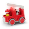 Myland Fire Truck Our friendly firefighter turns on the siren lights when placed in the driver’s seat, while the black and white dog activates playful sound effects. Children discover that by color matching the characters with their seats, the firefighter and dog transform into on/off switches that control the truck’s actions. A movable ladder makes saving the day as easy as 1, 2, 3!
