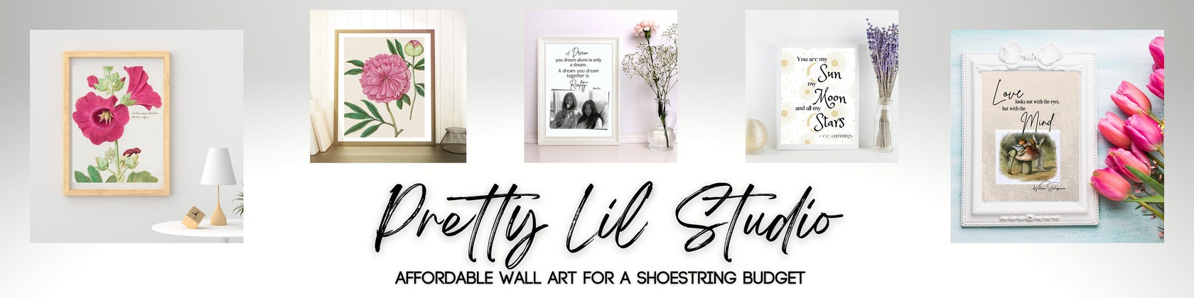 Hi, I’m Sara, owner of Pretty Lil’ Studio! I come from a long line of graphic artists and was frustrated that I couldn’t find any affordable artwork to furnish my apartment. So I created Cheap Wall Art by Pretty Lil’ Studio where I create beautiful and inspirational artwork you can print at home for cheap. Everyone deserves a beautiful space, even if you don’t have a lot of money. I hope you like my creations