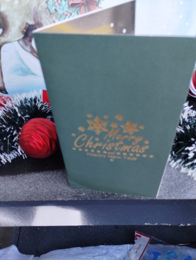 I picked out the Christmas Card for my best friend because its different from the Greeting Cards in our store but the tree is so pretty inside that I’m thinking I might use it as part of our decorations once we begin decorating our home this morning. Would you like to help us? Charlie even saw the Christmas Card and asked me if I decided not to use it if he could have it and I knew that would happen.