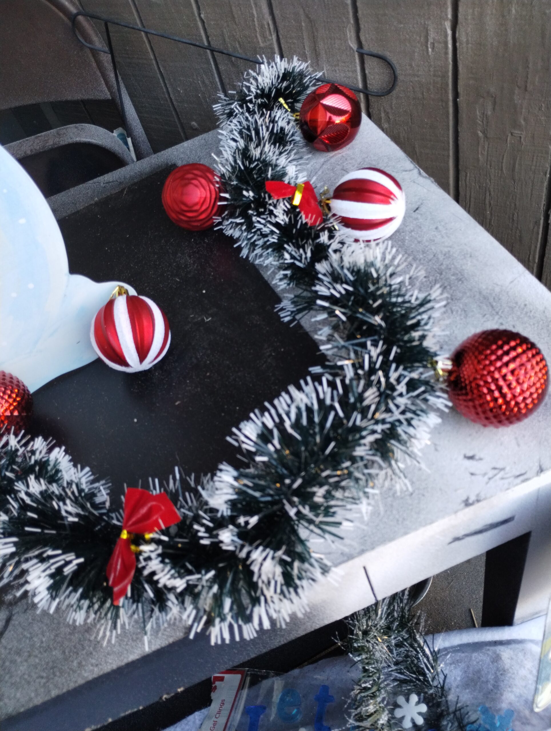 Along with 2m Green and White Edge Christmas Snowflake Tinsel Garland the Perfect Holiday Decorations. The red ribbons Charlie is working on attaching to the Garland for his desk in his room although I bet you Charlie uses it around his coffee table. Although I wouldn’t mind having it for the coffee table in the living room or to drape on our TV Stand. If you had the garland where would you use it and why?