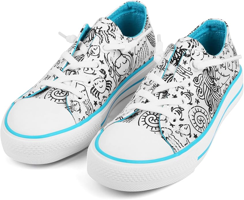 (Perfect gift for child) The design is inspired by fairy tales. The beautiful mermaid is a princess in children’s heart. This time, let the kids paint the monster a unique color. TimesGo painting flat sneakers are perfect gifts for children, such as birthday, children’s day, school present.