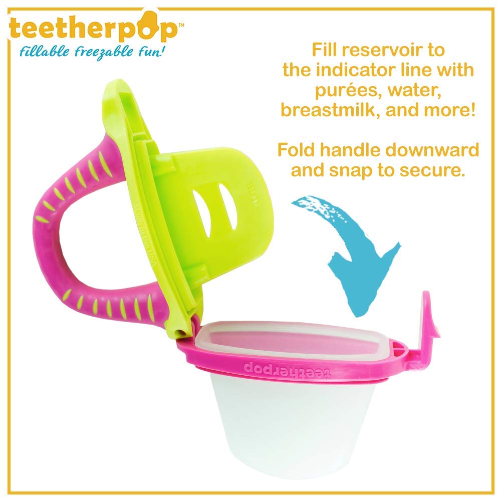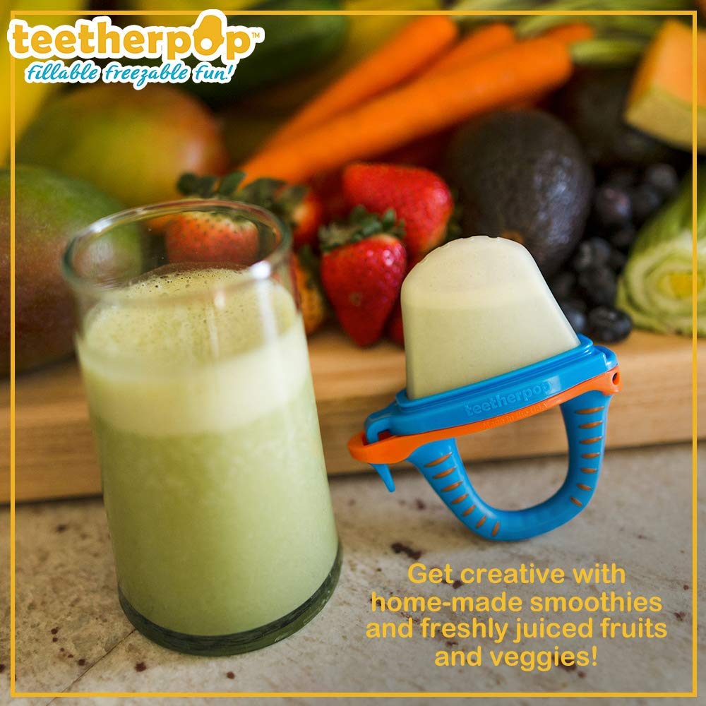 Introducing teetherpop™, a patented line of fillable, freezable teethers. From babies first purées, water, breastmilk and even homemade smoothies and freshly juiced fruits and veggies, our baby teethers help soothe teething woes, entertain little ones, and provide a cheery treat whenever the mood strikes!
