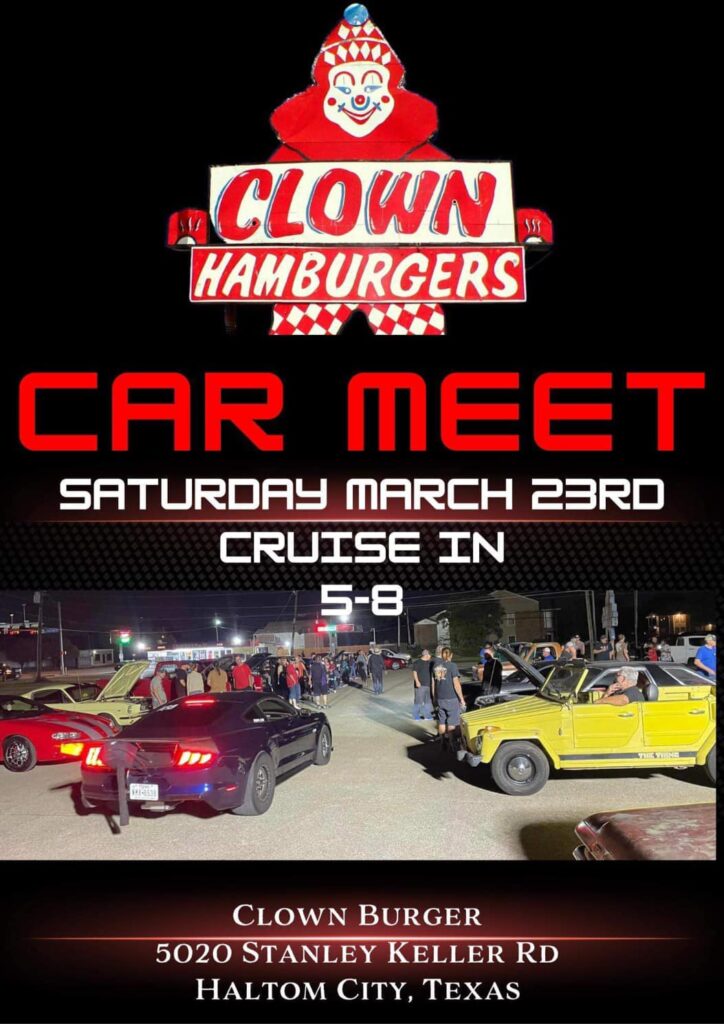 I was blessed when David took part of the day off yesterday to spend with me so we could visit a Farmers Market which was hosting there grand opening that morning. That evening we went to pick up Pizza and drinks for Charlie and Bradley. On our way home I remembered Clown Burger was hosting a Car Show only I thought it was next week. I looked up there Facebook page and saw it was happening last night.
