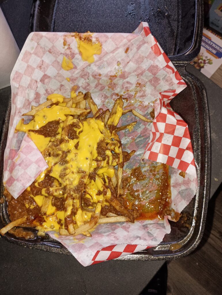 The closer we got to Clown Burger the more disappointed David got because he didn’t see any cars but then we got to the light and the parking lot was full. Like a little kid David couldn’t wait to park and get out and walk around. But before he went to see the Cars David said he was going inside to get me a order of Chili Cheese Fries my all time favorite Fries.
