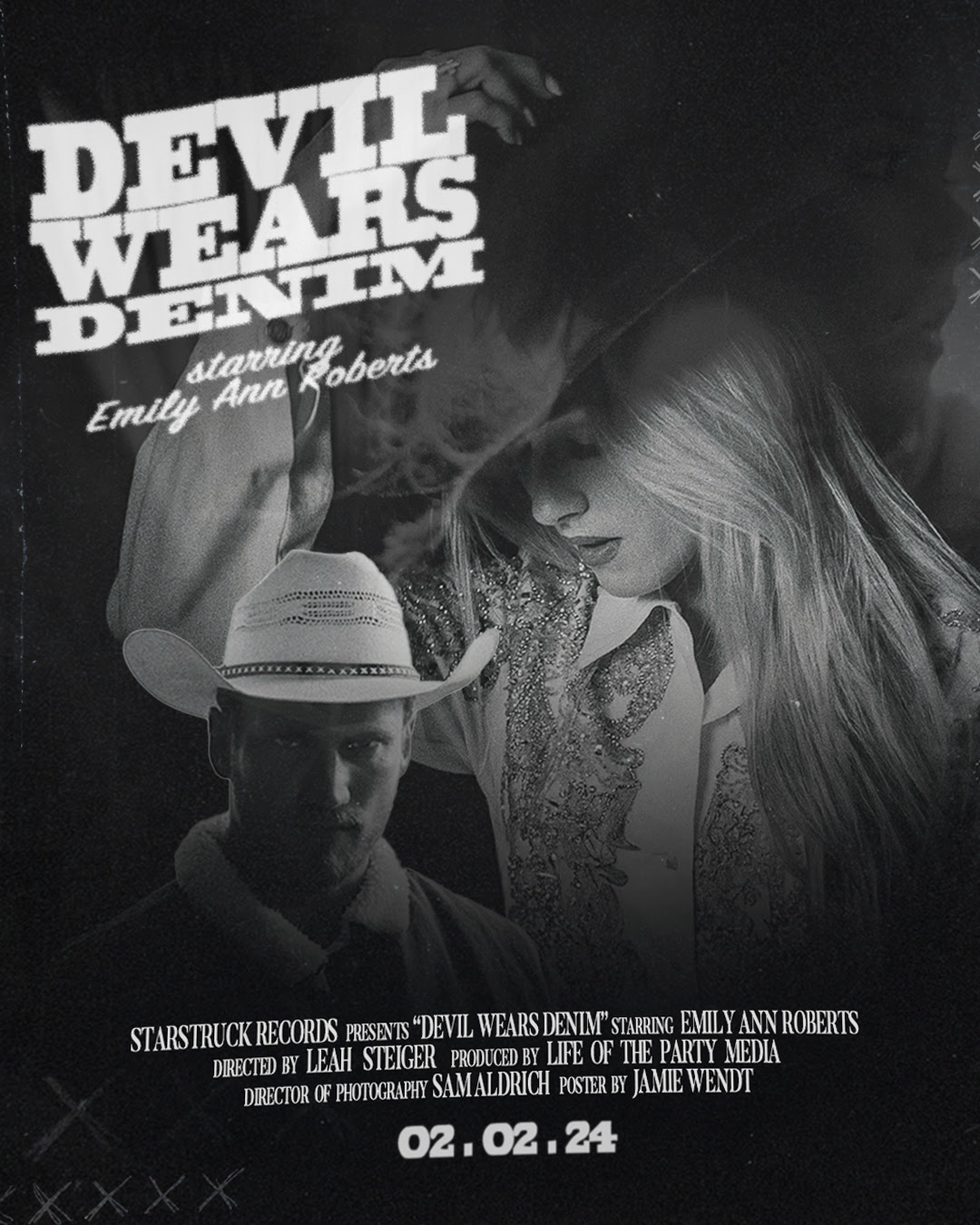 “Devil Wears Denim” was penned by Emily Ann Roberts with her producer Trent Willmon along with Autumn McEntire. The music video can be seen starting today on television networks CMT and CMT Music, Pluto TV’s CMT Equal Play, CMT.com and a special debut on Paramount’s Times Square Billboard. Roberts’ critically-acclaimed debut full-length album Can’t Hide Country came out in September 2023. Blake Shelton asked her to join him as the opener of his Back to the Honky Tonk Tour Presented by Kubota which kicks off in arenas in 17 cities on February 22.