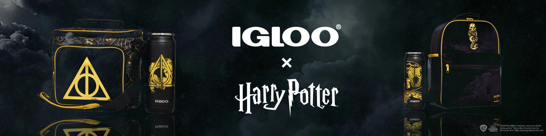 Igloo Coolers has released a special-edition HARRY POTTER Dark Arts™ cooler and drinkware collection, that became available January 16th, 2025 IglooCoolers.com. The four piece collection includes a square lunch cooler bag, convertible backpack cooler and 16 oz cans with two designs — celebrates the most forbidden magic, featuring intricate Dark Arts™ symbols, Nagini artwork, and gold metallic accents on sleek, all-black surfaces.
