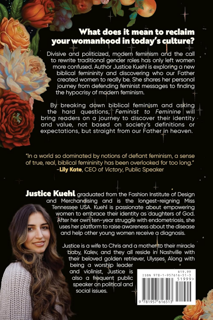 I would like to share a new book I received in exchange for this review. The book is for women but I believe men can learn from the Author as well. I hope you take the time ti check out Feminist to Feminine: Reclaiming the Value of Womanhood in God’s Story by Justice Kuehl (Author). Inside this post is my affiliate links. If you click on the links and make a purchase I will make a small percentage from the products you purchase.
