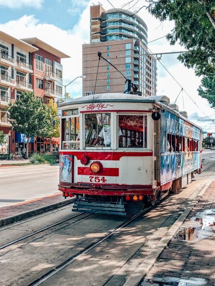 As Charlie graduates this week we need to get out and explore our City because he will be driving soon. As I was looking for fun and unique things to do in DFW I found out we can Ride a Vintage Street Car on McKinley Avenue in Dallas and all you have to do is look for a maroon sign labeled M-LINE Trolley.