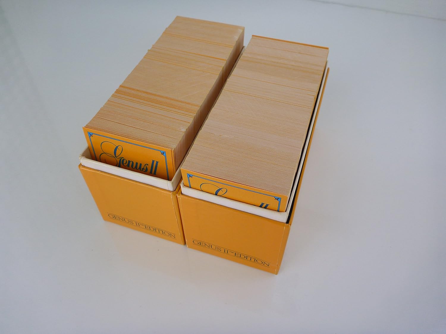 The Trivial Pursuit Genus II Edition, a subsidiary card set for use with the Master Game, contains 1000 cards, 6000 questions and answers in six categories: Geography, Entertainment, History, Art and Literature, Science and Nature, Sports and Leisure.