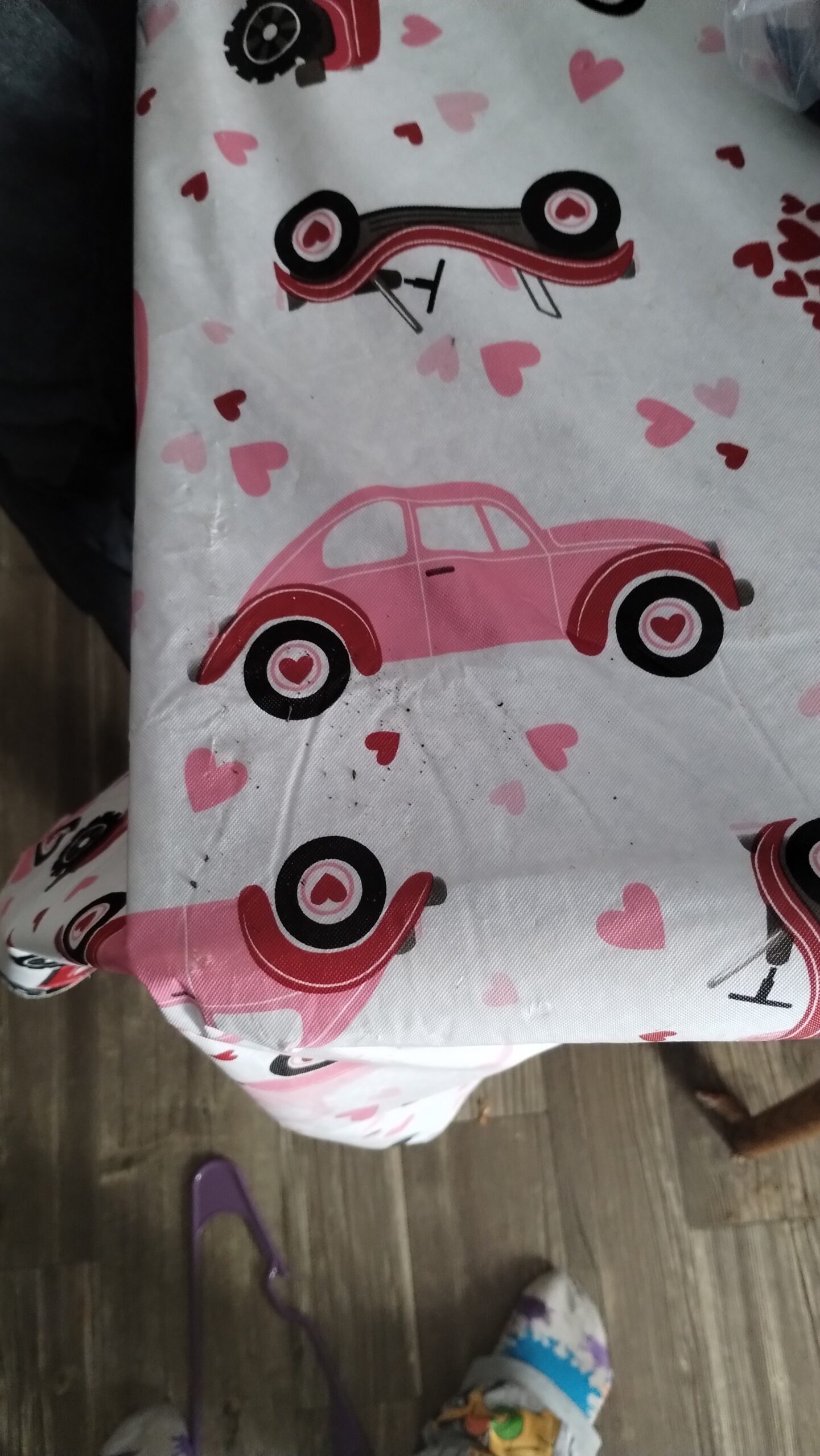 The cup towel with cars on it and the Gnomes along with the Dog and our kitchen tablecloth which also have the cars on it came from Hobby Lobby. I was able to purchase it when there where on sale for 40% off. Also you can see our kitchen tablecloth David picked out because it has my Volkswagen ie Slug bug and Truck on it with David and Charlie’s Jeep.