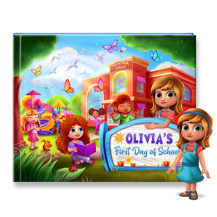 Come September, be sure to send off your fledgling with a customized “First Day of School” storybook where your child embarks on their first day of school, filled with excitement and a few nervous butterflies. Watch as they navigate new experiences, make friends, and discover that school is a fun and welcoming place.