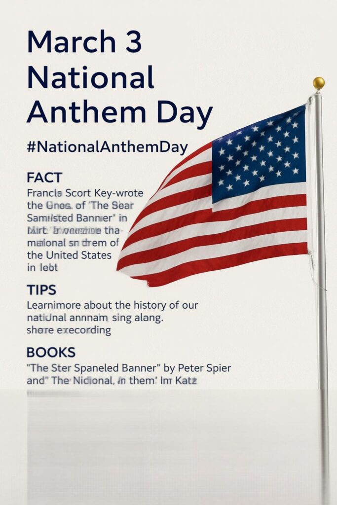 Every year on March 3, we celebrate National Anthem Day, honoring the moment in 1931 when “The Star‑Spangled Banner” officially became the national anthem of the United States. The lyrics were written in 1814 by Francis Scott Key, who witnessed the Battle of Fort McHenry and was inspired by the sight of the American flag still waving at dawn.