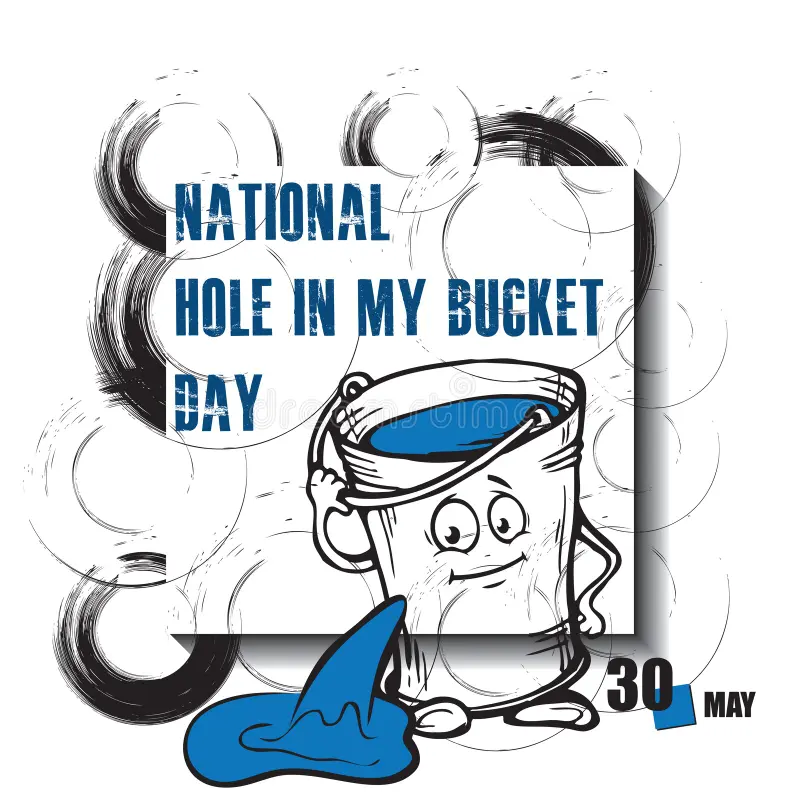 National Hole In My Bucket Day falls on May 30th. National Hole In My Bucket Day pays homage to an old children’s song that goes by the same name. The song ‘There’s a Hole In My Bucket’ originated in Germany in the 1700s. A Hole In My Bucket describes a deadlock situation where the character, Henry, faces problem after problem all due to a hole in his bucket.
