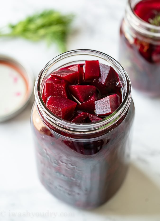 - Meanwhile, inspect 10 pint-sized jars for cracks and rings for rust, discarding any defective ones. Immerse in simmering water until beets are ready. Wash new, unused lids and rings in warm soapy water.