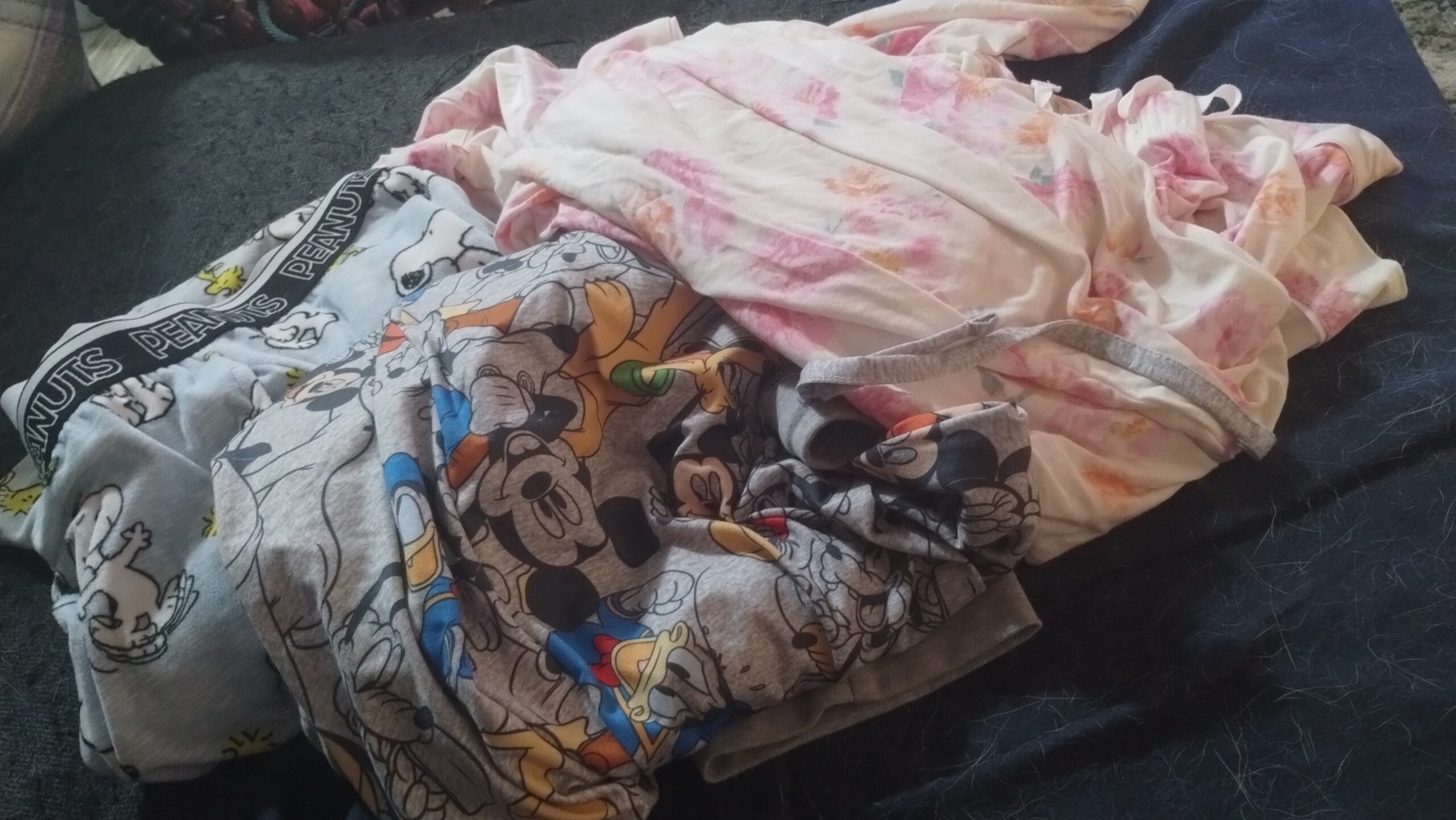 For me David bought me nice set of PJ’s from Victoria Secrets which I love and I honestly never thought I would have anything from here. Then my sister purchased a pair of Snoopy PJ paints for me that I love because there nice and warm. David also both me a pair of men’s sleep pants from Walmart with Donald Duck and his friends on them.