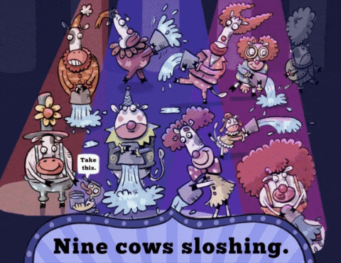 The cows are under great management… but will they succeed in making this playful establishment clean? These circus clowns will if Dükman has anything to say about it!
