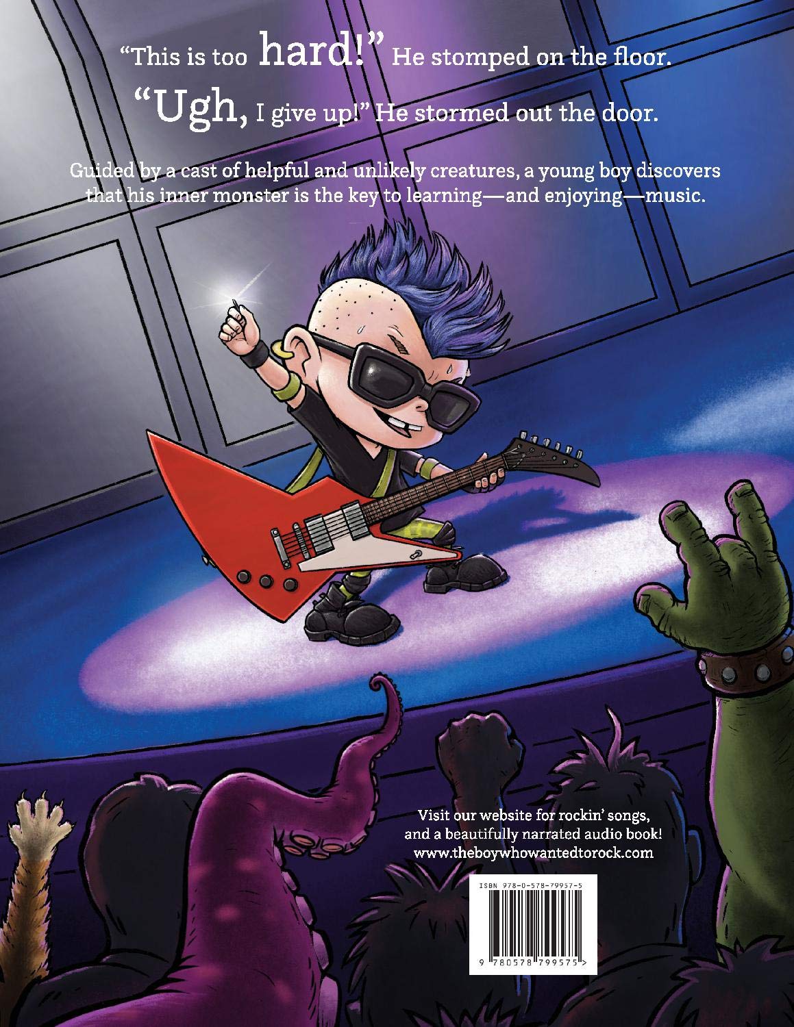 Intended for children ages 3 – 8 years, the book introduces fundamental concepts like rhythm and pitch, and provides a basic overview of how keyboard and fretted instruments work. An easy-to-digest tale told in rhyme, it begins with a frustrated child in a bedroom full of instruments, and ends with proper rock n’ roll mayhem in a cave full of monsters!