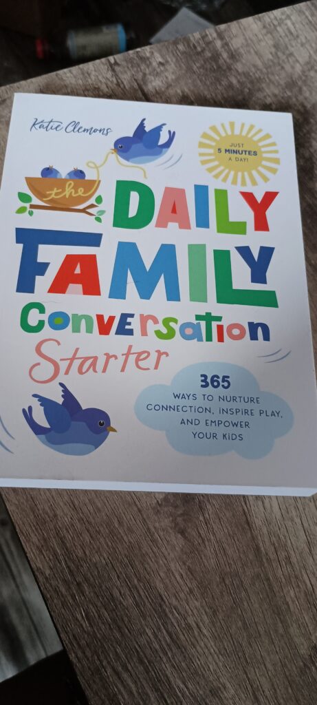 I would like to share a new Parenting/ Self-Help or Journaling Novel with you called The Daily Family Conversation Starter: 365 Ways to Nurture Connection, Inspire Play, and Empower Your Kids by Katie Clemons (Author). I received a copy of in exchange for this review. Inside this post are my affiliate links if you click on the links and make a purchase I will make a small percentage from the items you purchase.