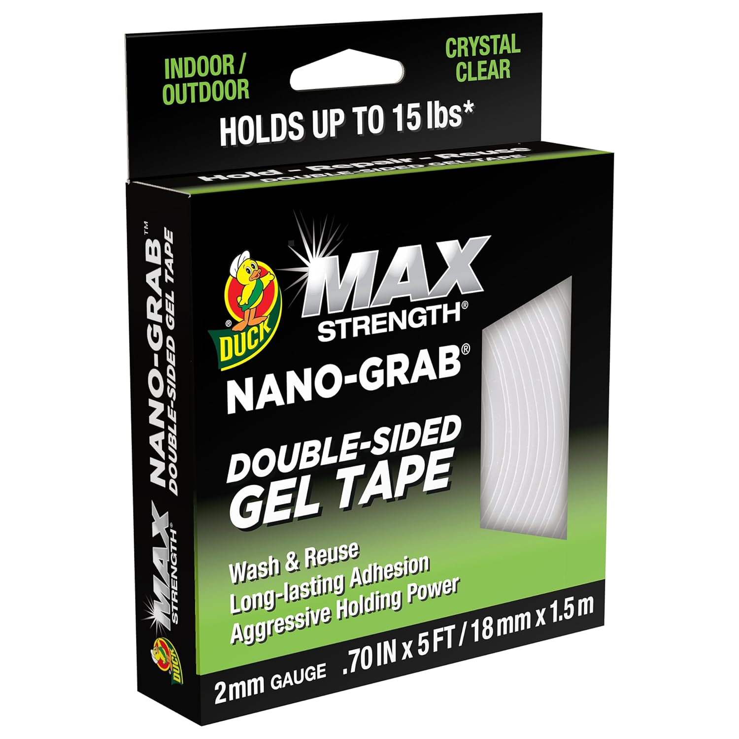 Duck Max Strength Nano-Grab Double Sided Nano Tape is the only multi-purpose DIY or repair tape you’ll need for your next project. Easy to use and remove, this clear double-sided tape features a durable gel construction with micro sphere adhesive particles that ensure long-lasting adhesion and extreme holding power.