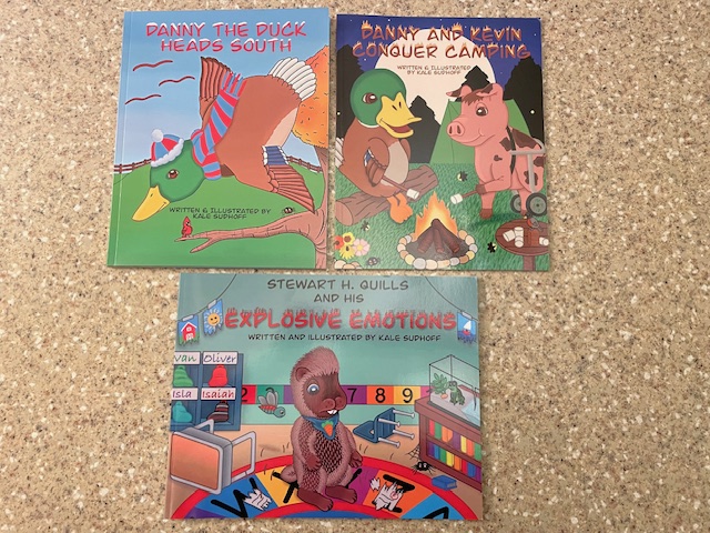 In the Fall of 2020, when he was a Sophomore in High School, he released his first book, Danny the Duck Heads South, and in the Spring of 2022, when he was a Junior in High School, he released his second book, Danny and Kevin Conquer Camping. Throughout his school years, he has seen kids being excluded for being different or having a disability, so he wanted Danny and Kevin Conquer Camping to raise awareness for Limb Loss and Limb Difference