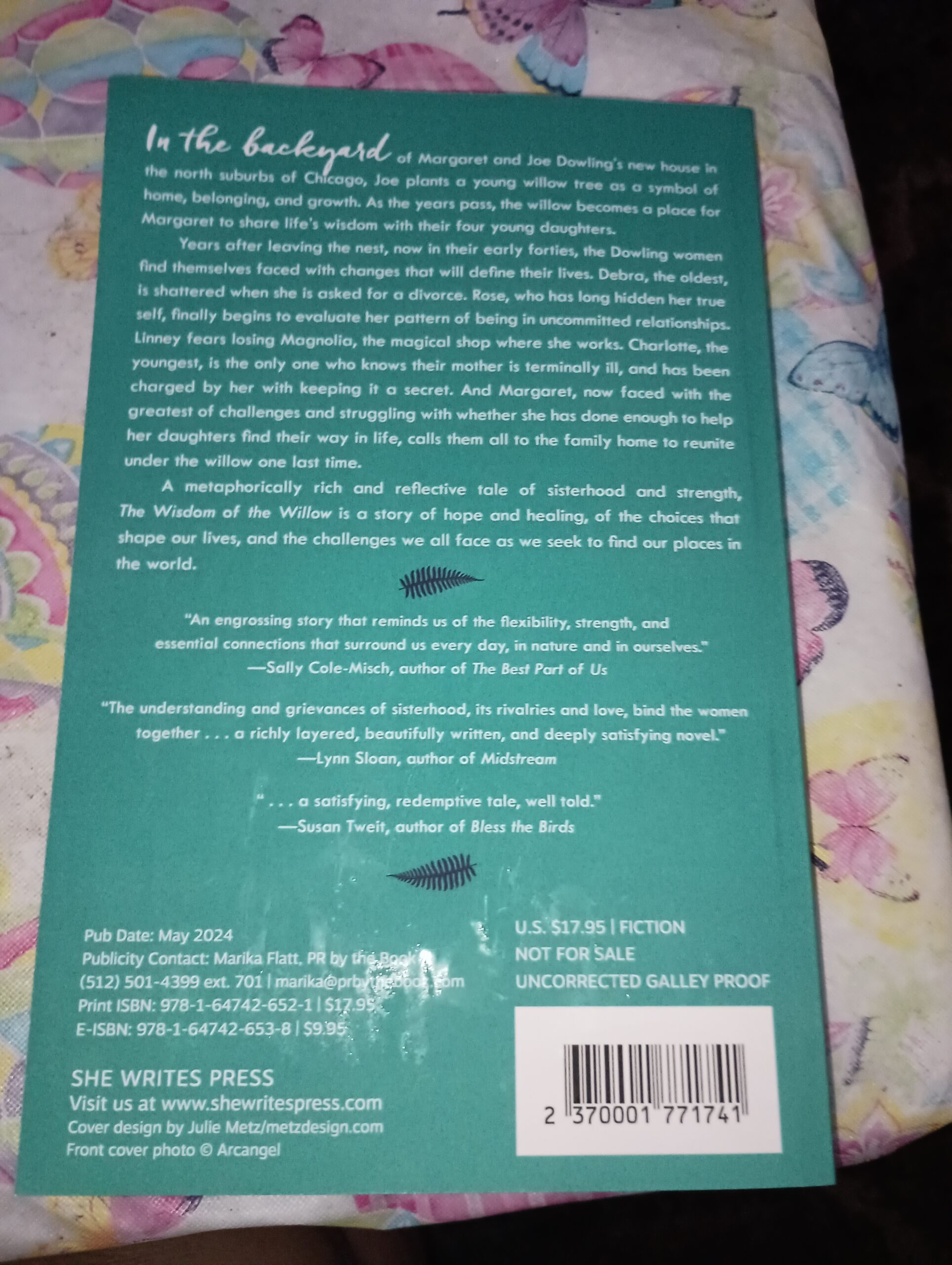 The Wisdom of the Willow is a story told by the four Dowling sisters and their mother over the course of a year based in Chicagoland. The story takes place in the house there parents first moved into and the yard they planted a Willow Tree in, I wish I could have seen the Willow Tree in person.