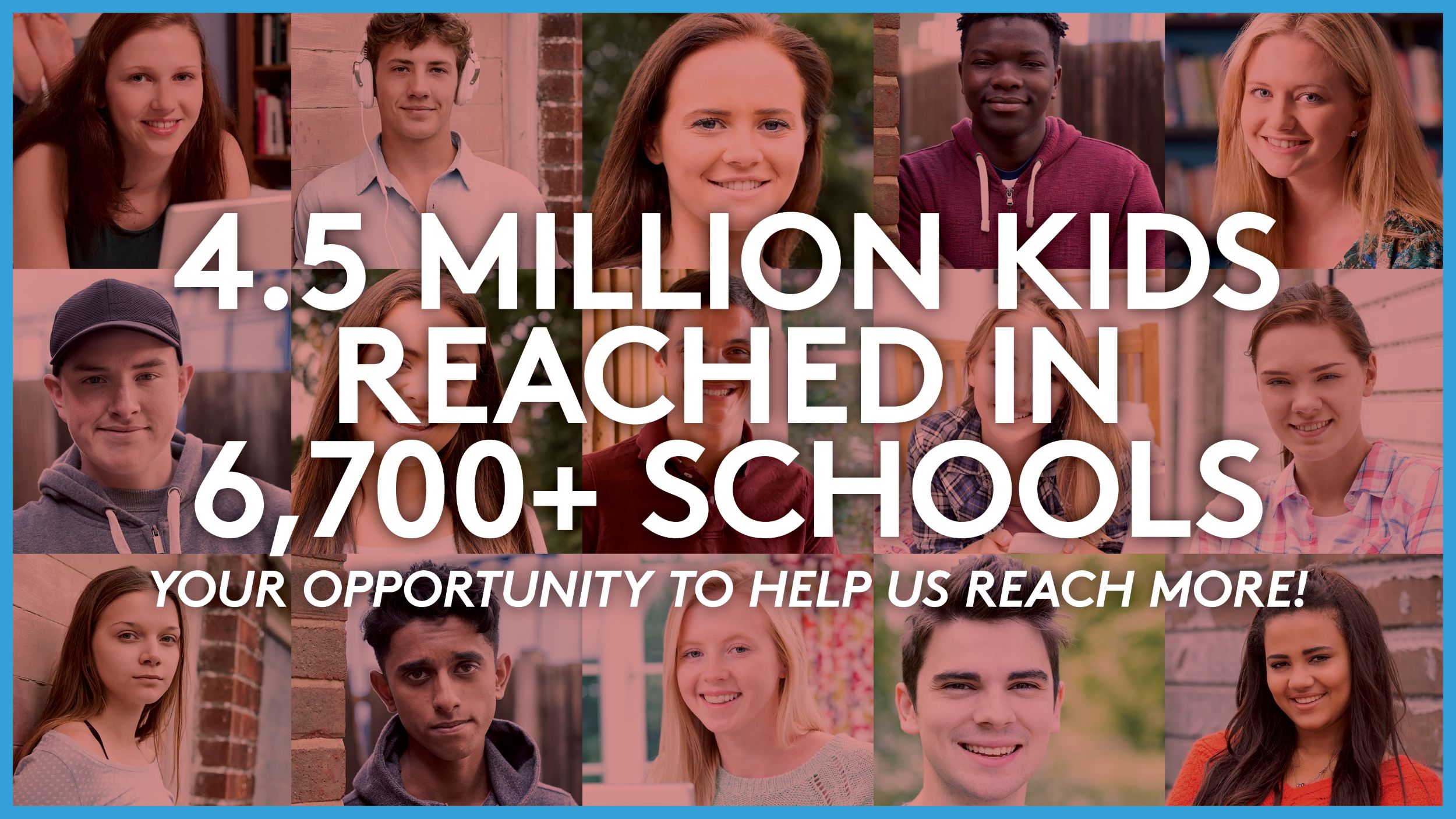 The programs have reached over 4.5 million students across the country, in more than 6,700 schools. With well over 100,000 schools in America, there are many more students that need the message needs to reach.