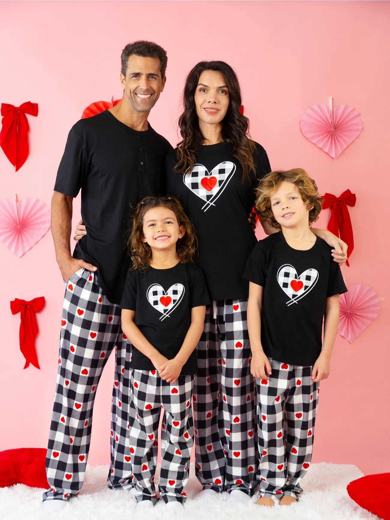 I knew the perfect place to look would be PatPat. I found Valentine Pajamas for Family/Couple – Heart Print Short-sleeve Top and Plaid Pants (Black). I liked this set because it comes in sizes for adults as well as children.