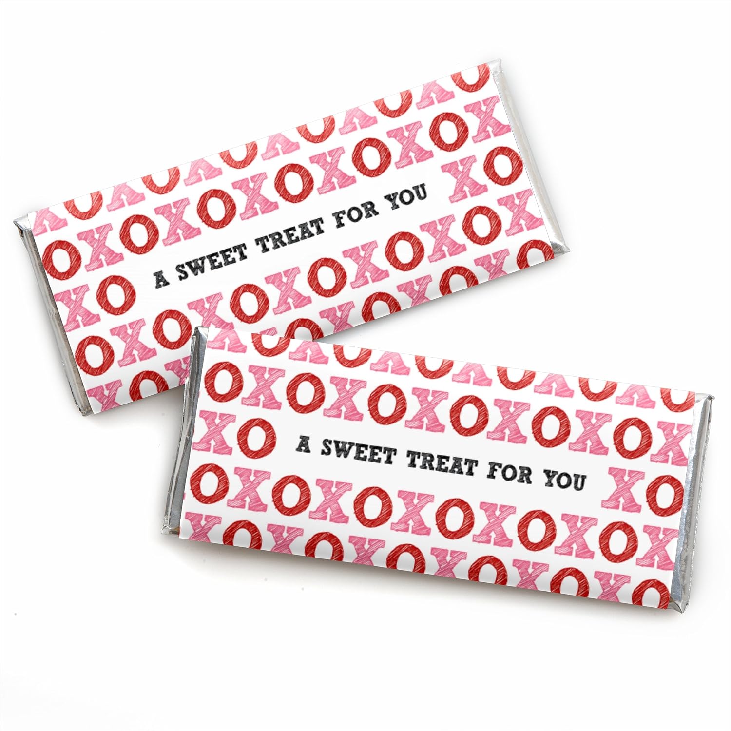 Give your guests the perfect Valentine’s party favor when you wrap Hershey’s Milk Chocolate Bar with these adorable XOXO Valentine’s Day Candy Bar Wrappers. Packaged in a set of 24, this Valentine’s Day favor kit includes the silver foil wrapper and the printed XOXO themed wrapper. Best of all, each Valentine’s Day Candy Bar Wrapper Party Favor has adorable nutrition facts printed on the back! Your guest won’t be able to stop themselves from smiling. Valentine’s Day candy bar wrappers are easy to use, designed specifically for standard Hershey’s 1.55-ounce candy bars.