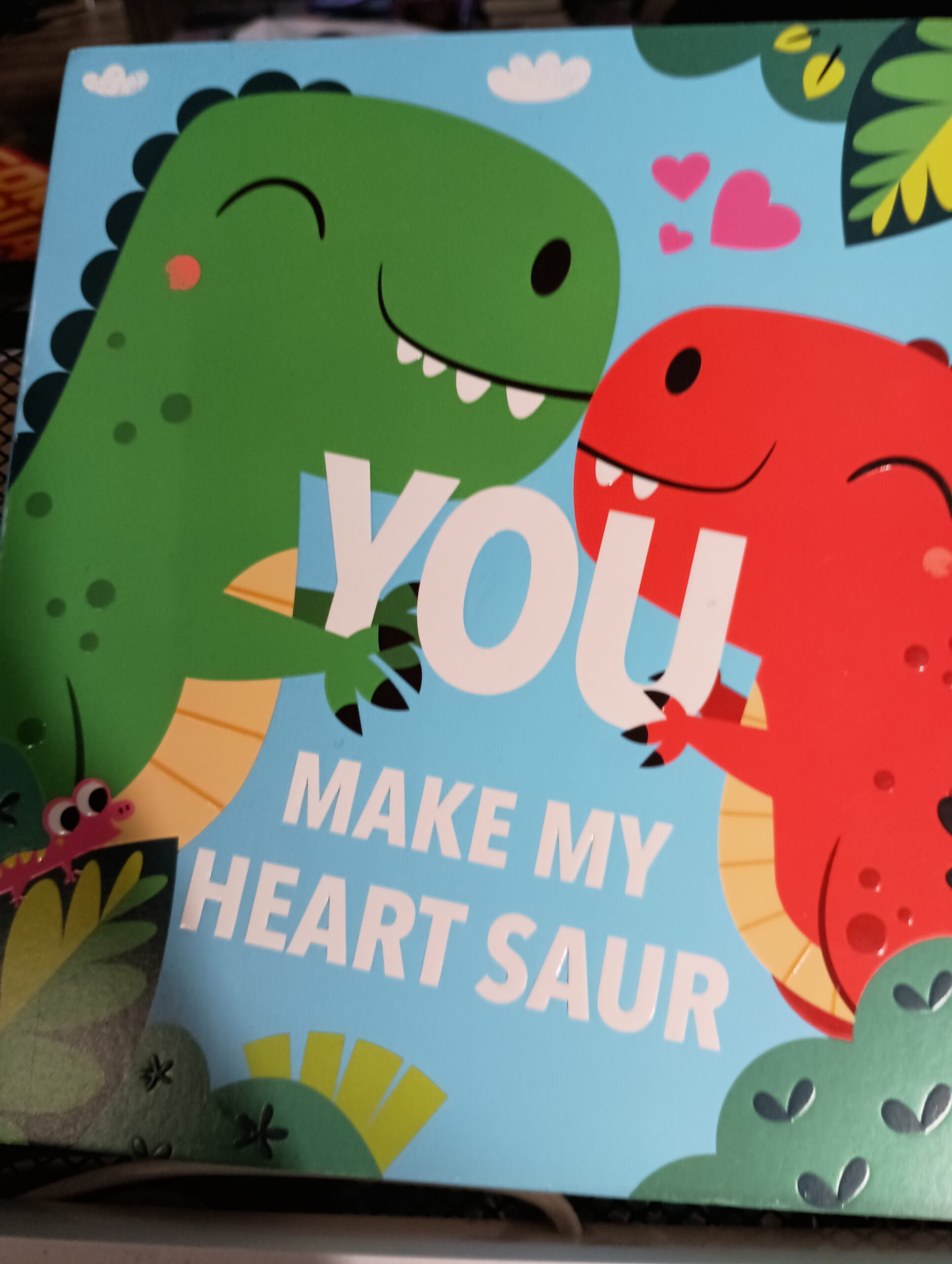 I wanted to share a children’s board book with you that reminds me of Valentines Day. The book is called You Make My Heart Saur Board book. This children’s board book is written by Maggie Fischer, and the illustrations were done by Todd Lauzon (Illustrator). I received a copy of the book in exchange for a review. Inside this post is my affiliate links. If you click on the links and make a purchase I will make a small percentage off the items you purchase.